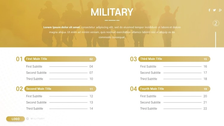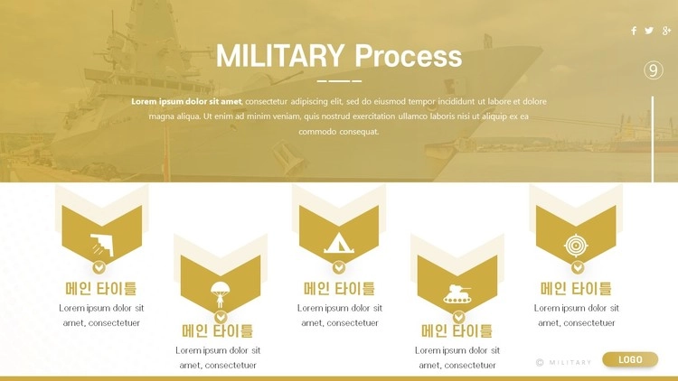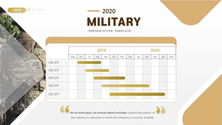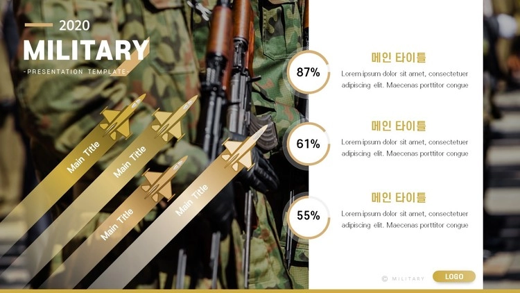 육군 군인 전쟁 테마로 제작된 군대 PPT 템플릿 디자인 구성을 소개합니다.