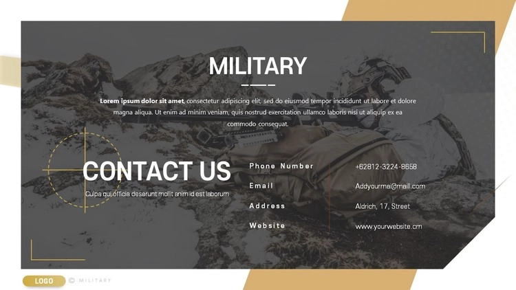 현역 군대 및 군사 보안 작전 프레젠테이션 및 보고서 PPT 디자인으로 활용하거나 군사학과 학생, 중고등학교 전쟁 주제 발표용 PPT 템플릿 등으로 응용할 수 있습니다.