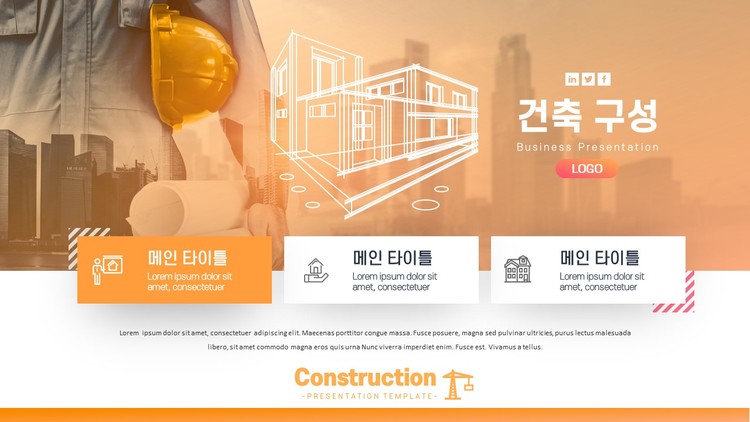 공사 지명원 및 시공 계획서 테마로 제작된 건축 PPT 템플릿 디자인입니다.
