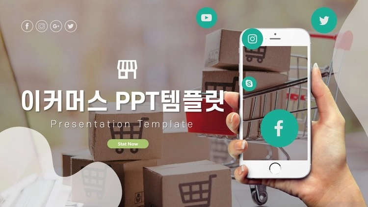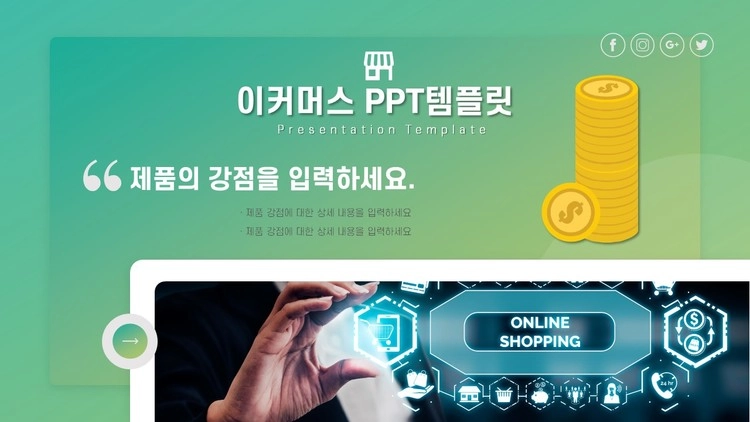 온라인 쇼핑몰 사업 계획서 PPT 템플릿 테마로 제작된 프레젠테이션 양식 자료를 소개합니다.
