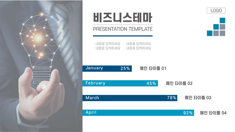 비지니스 자료에 필요한 사업 연혁, 팀원 소개, 비즈니스 모델, 통계 및 근거 자료 제시, 고객 현황 등 내용을 작성하고 깔끔한 디자인을 완성할 수 있습니다.