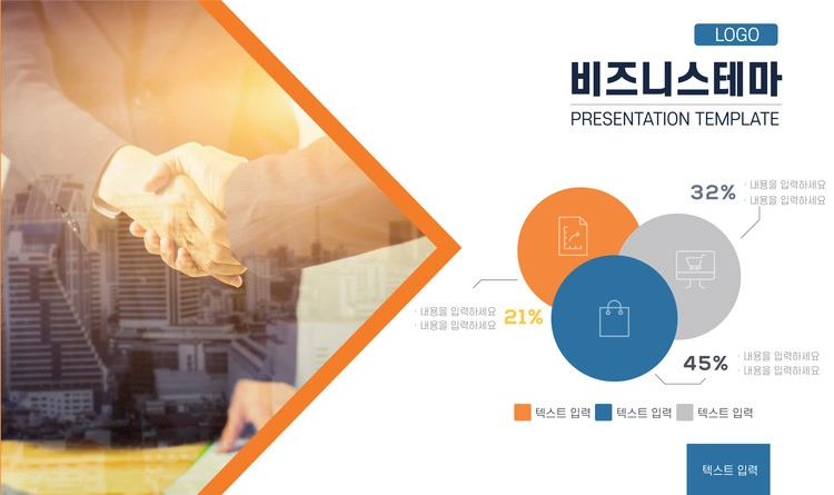 주황색, 파란색 색 조합 바탕으로 도형 디자인 개체에 적용을 했으며 무료 저작권 이미지 자료를 활용하여 깔끔한 프로젝트 제안서 PPT 템플릿을 완성했습니다.