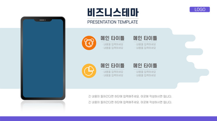 파랑색 색 조합 바탕으로 심플한 레이아웃 디자인을 보여줄 수 있으며 도형, 텍스트, 아이콘 등 모든 개체 수정 가능합니다.