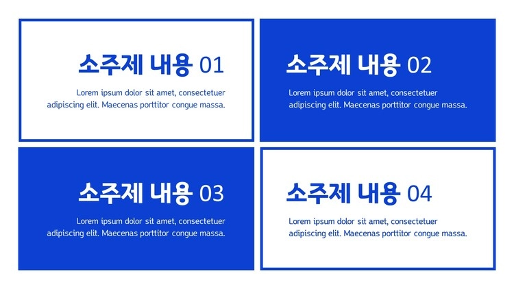 파랑색, 남색 색 조합 구성을 활용했으며 도형 개체, 텍스트, 인포그래픽, 도표 등 모든 개체 크기 변경, 색상 수정이 가능하도록 제작했습니다.