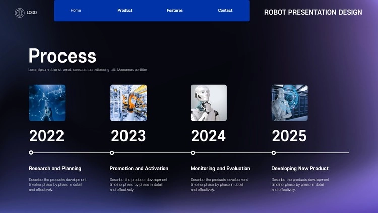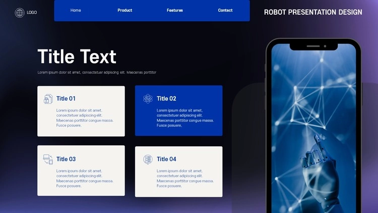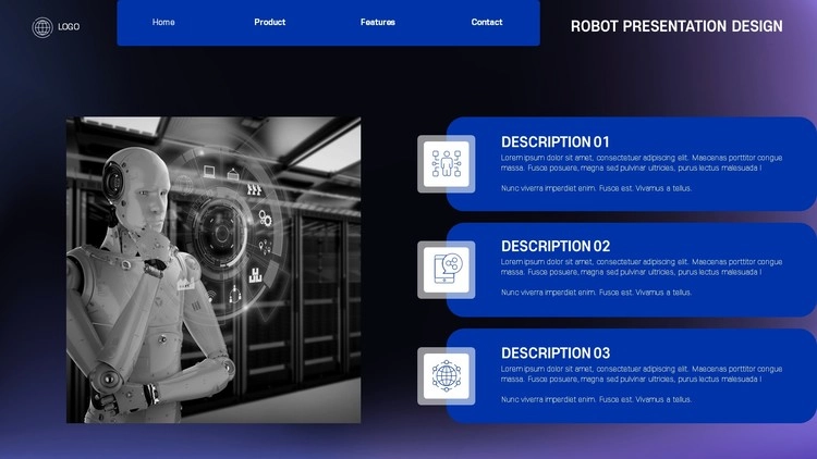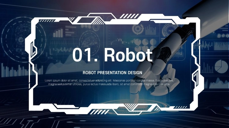 인공지능 4차 산업 테마로 제작된 로봇 PPT 템플릿 디자인입니다.