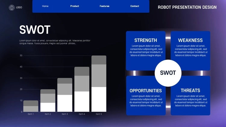 총 20장으로 구성되어 있으며 슬라이드 마다 활용할 수 있는 다양한 디자인 소스를 응용할 수 있습니다. 깔끔한 로봇 PPT 템플릿 디자인을 활용하여 학교 발표 자료, 기업 비즈니스 및 제안서 파워포인트 자료로 사용할 수 있습니다.