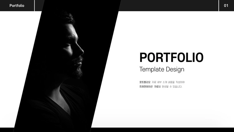 포트폴리오 디자인 자료를 제작하거나 자기소개 양식을 구성할 경우에 사용할 수 있는 양식입니다. 또한 프로필 소개나 회사 pt 면접 발표 자료 구성, 자기 pr 디자인 등 다양하게 활용할 수 있는 양식입니다. 검은색과 회색 컬러 구성을 활용하여 깔끔한 디자인을 제작할 수 있습니다.