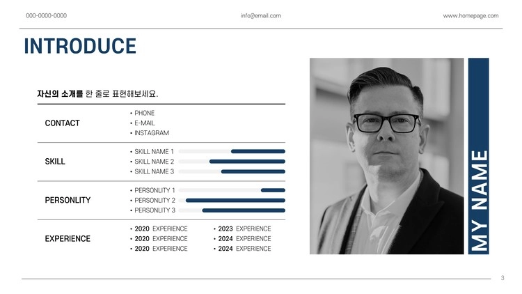 모던한 포트폴리오 및 프로필, 자기소개 자료로 사용할 수 있으며 모든 도형, 텍스트, 아이콘 개체 수정 가능합니다.