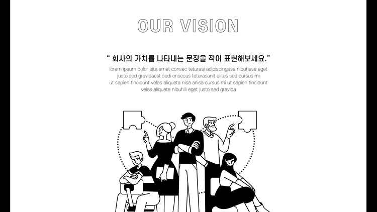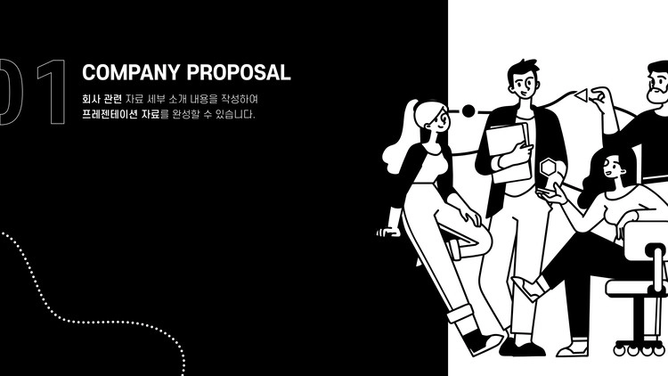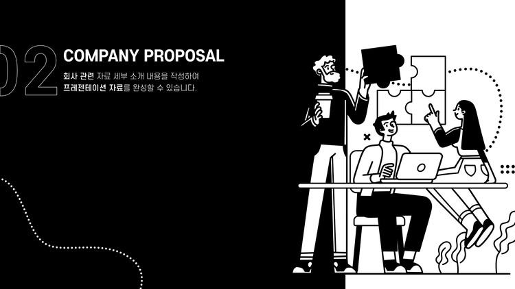 프레젠테이션 자료로 활용할 수 있으며 블랙앤화이트 색 조합으로 구성했으며 초록색, 파랑색 등 다양한 색 조합 자료가 제공됩니다.